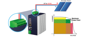 An MPPT (Maximum Power Point Tracker) electronic DC-to-DC converter enhances PV solar panel-battery bank or utility grid match. They convert solar panels' and wind turbines' higher DC output to the lower voltage needed to charge the battery. It accepts 400W PV modules.